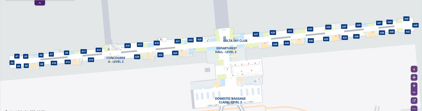 Located to the west of The Plaza, Concourse A is primarily operated by Delta Air Lines, one of SLC’s major carriers. This concourse features over 30 gates, currently numbered A1 to A25 and A27 to A35, with further expansion in progress.